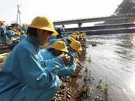 今年で2年目の実施となります。昨年の反省を踏まえ、今年は地区のほとんどの子供が参加してくれたようです。昨年と同様に水の授業、生き物クイズで水に関心を持ってもらい、魚つかみへとなりました。参加者が増えたとはいえ、子供が少ない地区となっていますので、一人一人がたくさんの魚を捕まえることができ、大満足したようでした。 |